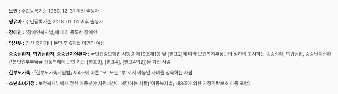 기초생활보장 수급자 중에서도 '노인, 영유아, 장애인, 임산부, 희귀질환자, 한부모가정 등'