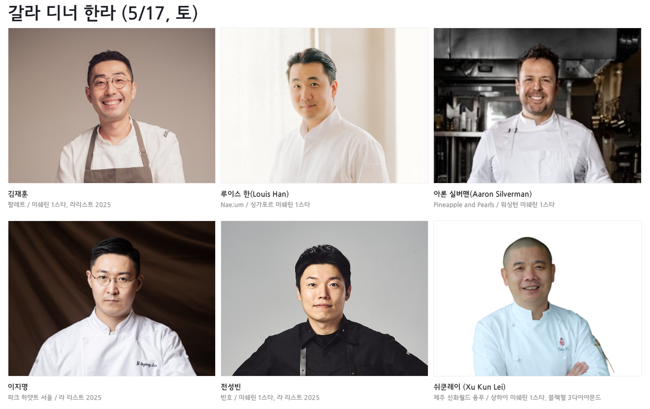 - 한라 갈라디너 (6.15): 국내외 미쉐린 셰프 6코스 정찬