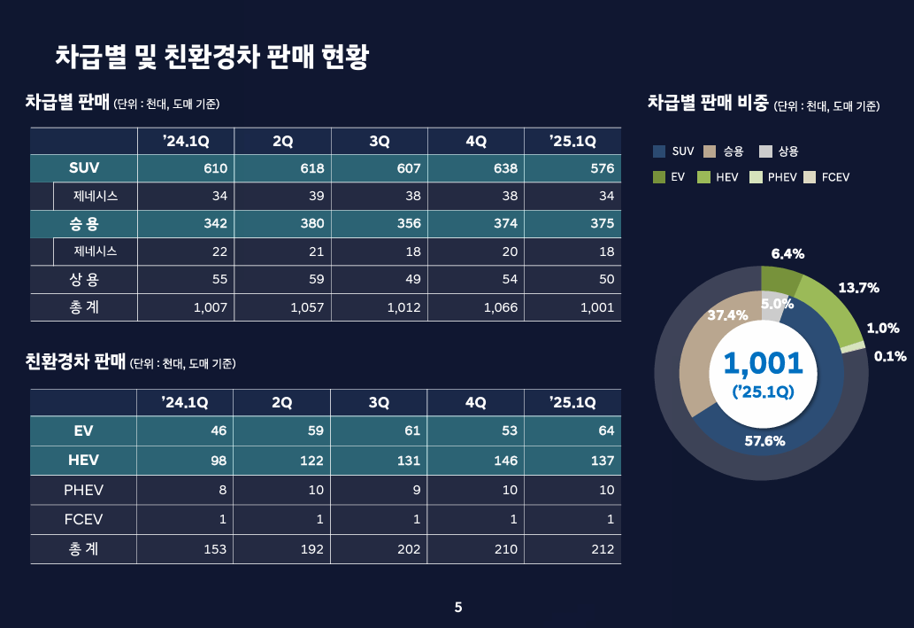 - 판매량 소폭 감소에도 불구하고, 하이브리드 차량과 금융 부문 실적이 매출 견인!